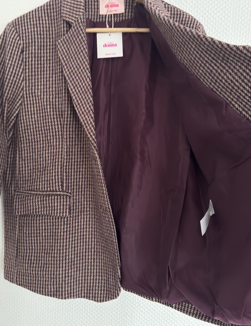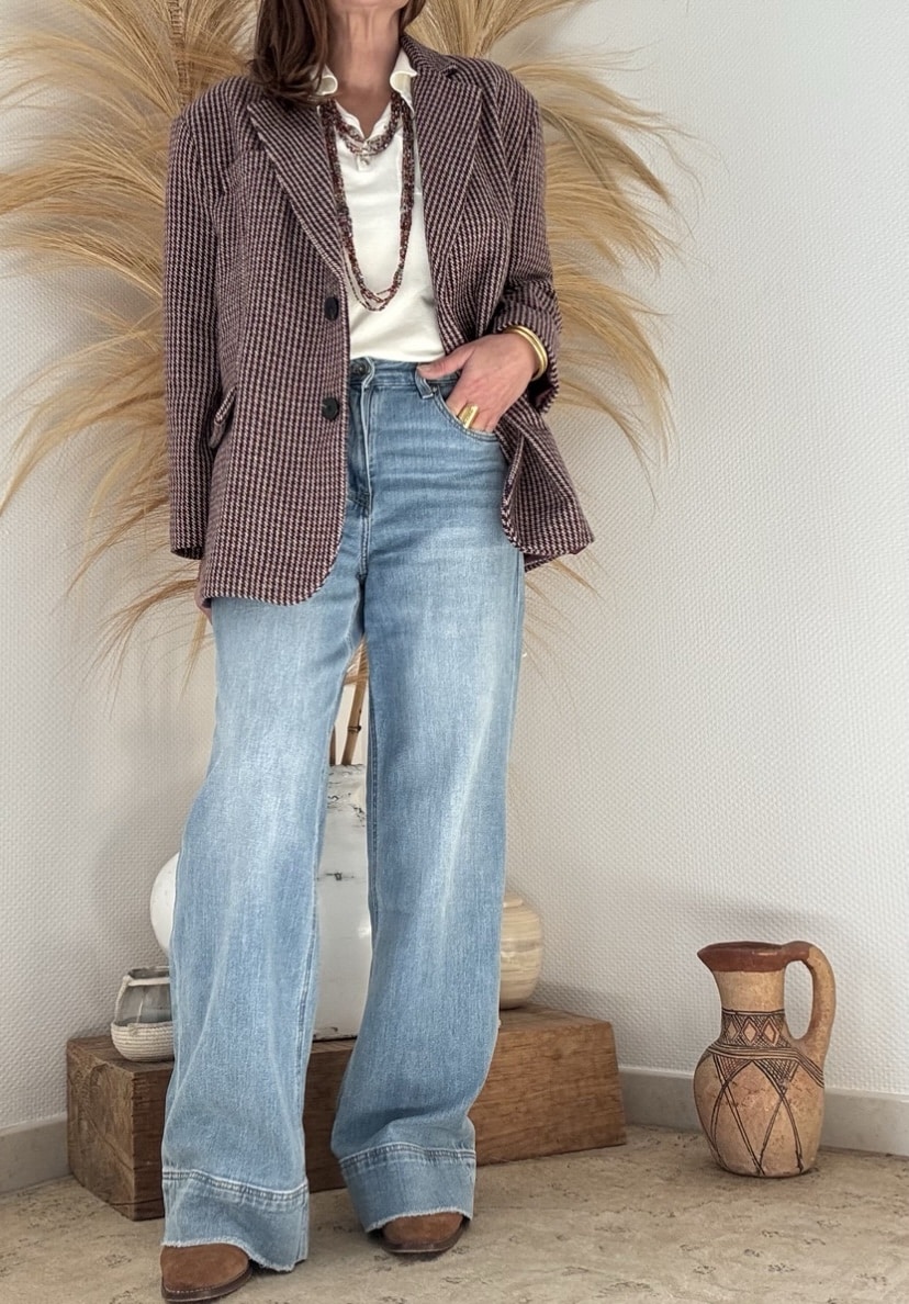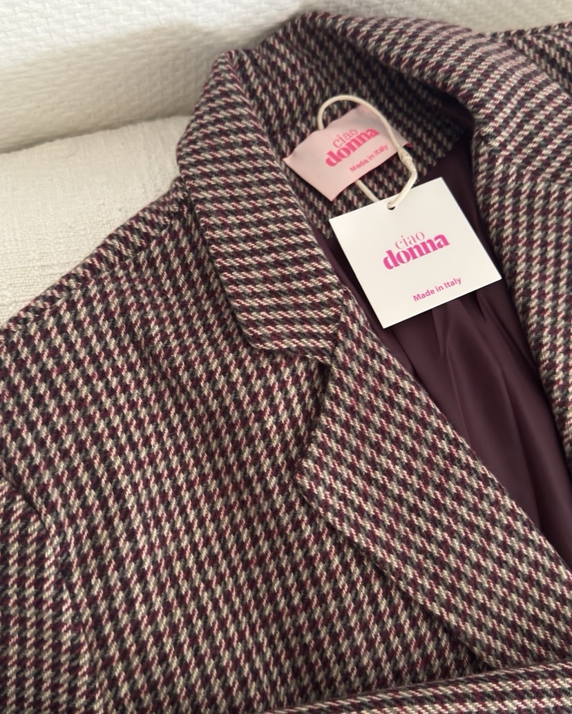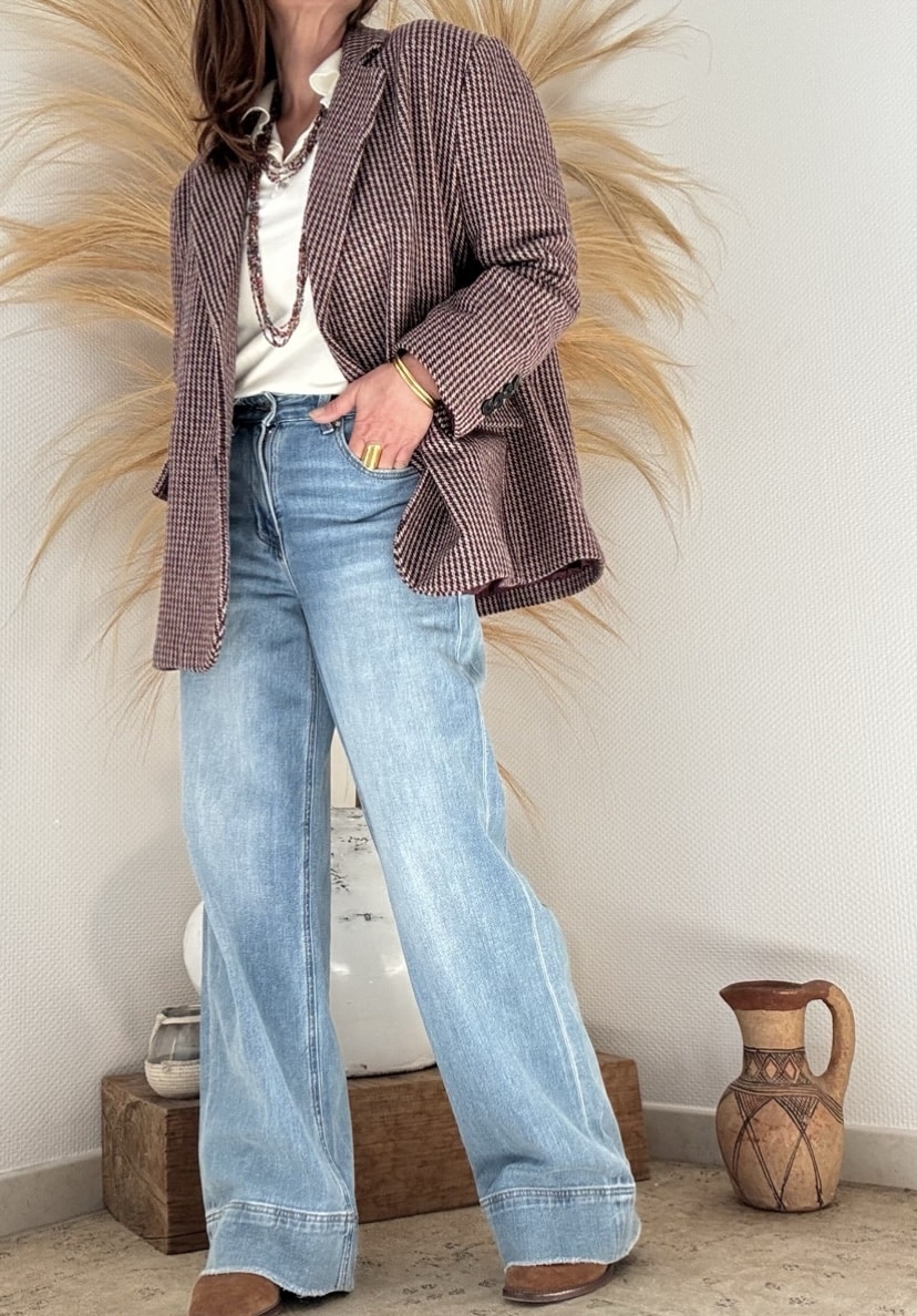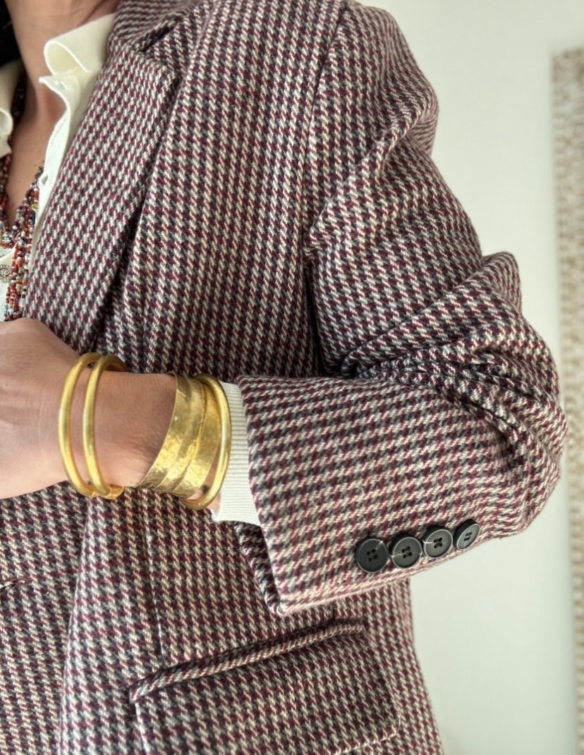 Kali, blazer oversize en pied-de-poule qui apporte immédiatement cette touche chic et affirmée qu’on adore. Ses tons bordeaux et gris, sa très belle qualité italienne et sa doublure bordeaux élégante en font une pièce forte, moderne et facile à assortir. Avec ses boutons en bas des manches et son tombé impeccable, c’est le blazer qui structure la silhouette tout en gardant une allure décontractée et tendance.
