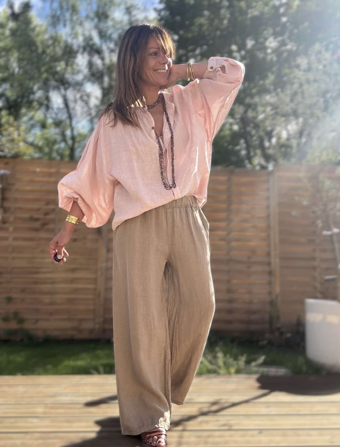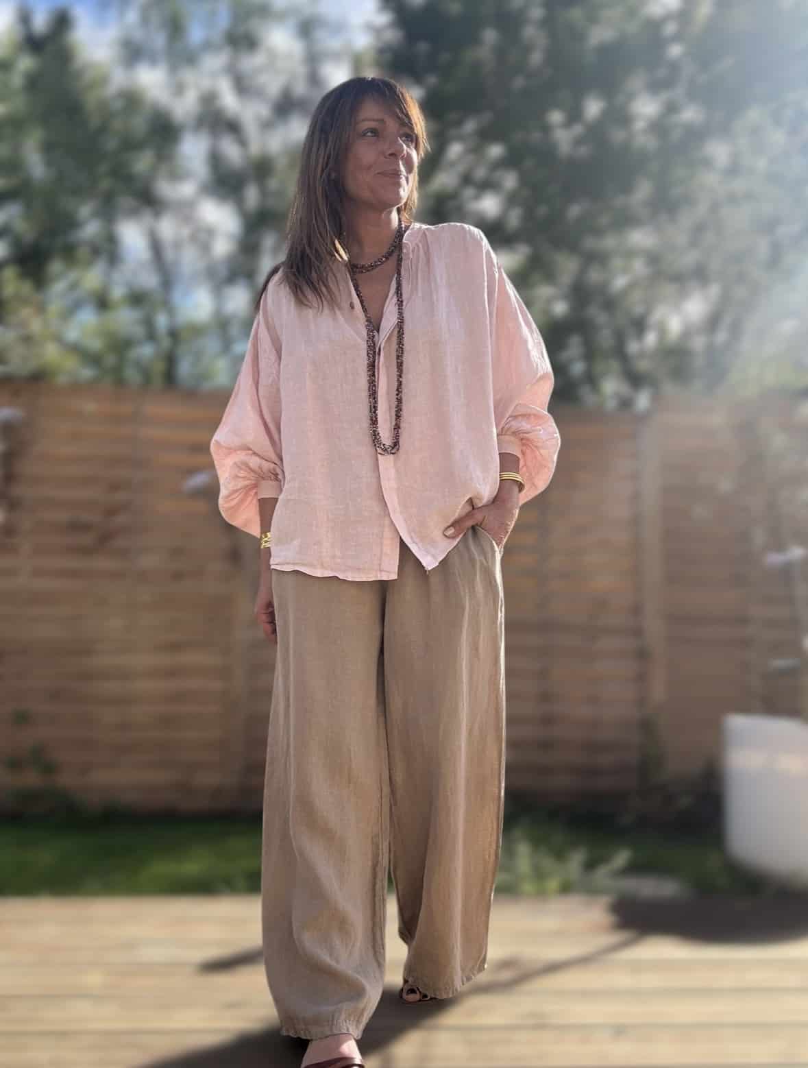 chemise ample en lin rose poudré Lévana