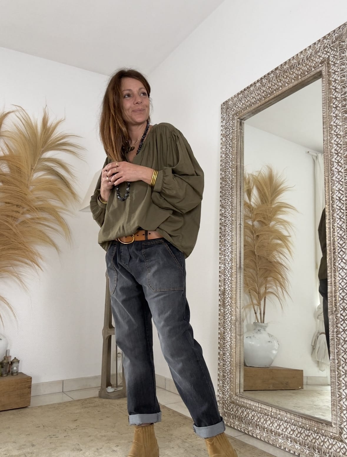 Enfin, la teinte kaki traverse les saisons sans se démoder. Elle s’associe facilement à des bas colorés, neutres ou imprimés. Portée avec un pantalon magique Nestor, un jean brut ou une jupe fluide, elle s’adapte à tous les styles.