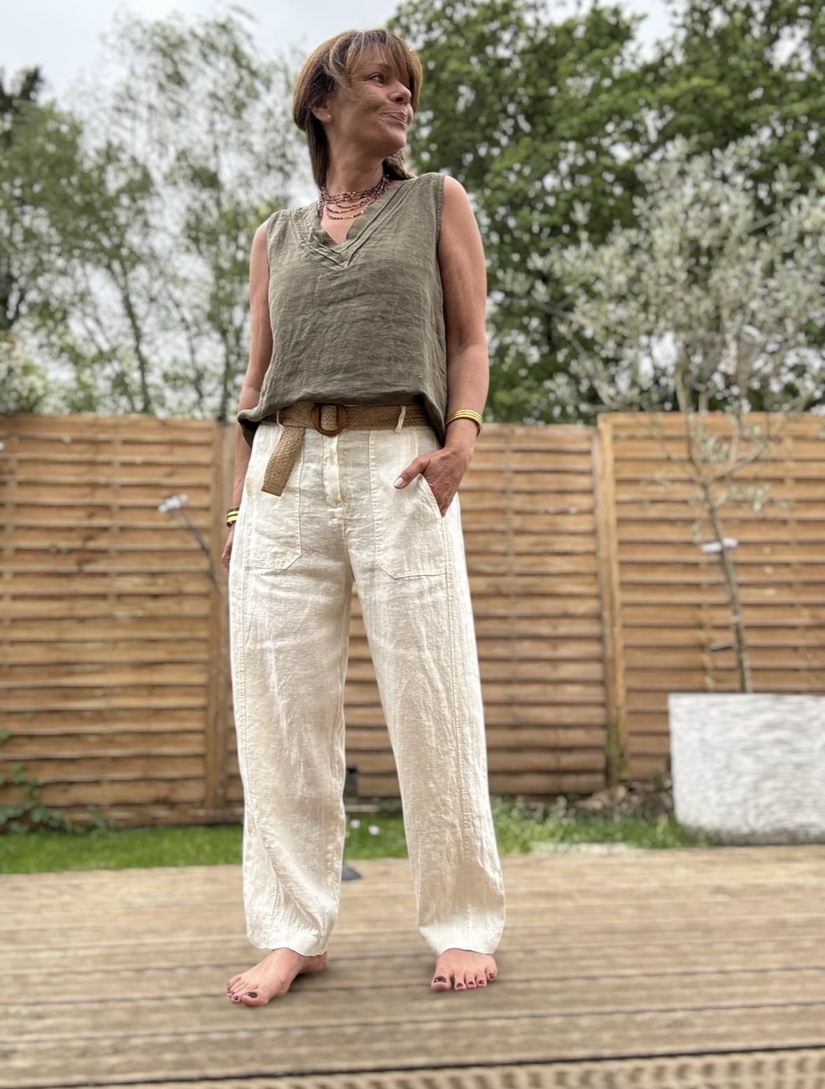 Le débardeur en lin kaki Mila est une pièce essentielle pour une garde-robe estivale élégante. Confectionné en lin, il offre une sensation de légèreté très agréable au quotidien. Sa matière naturelle laisse respirer la peau tout en assurant un tombé fluide.