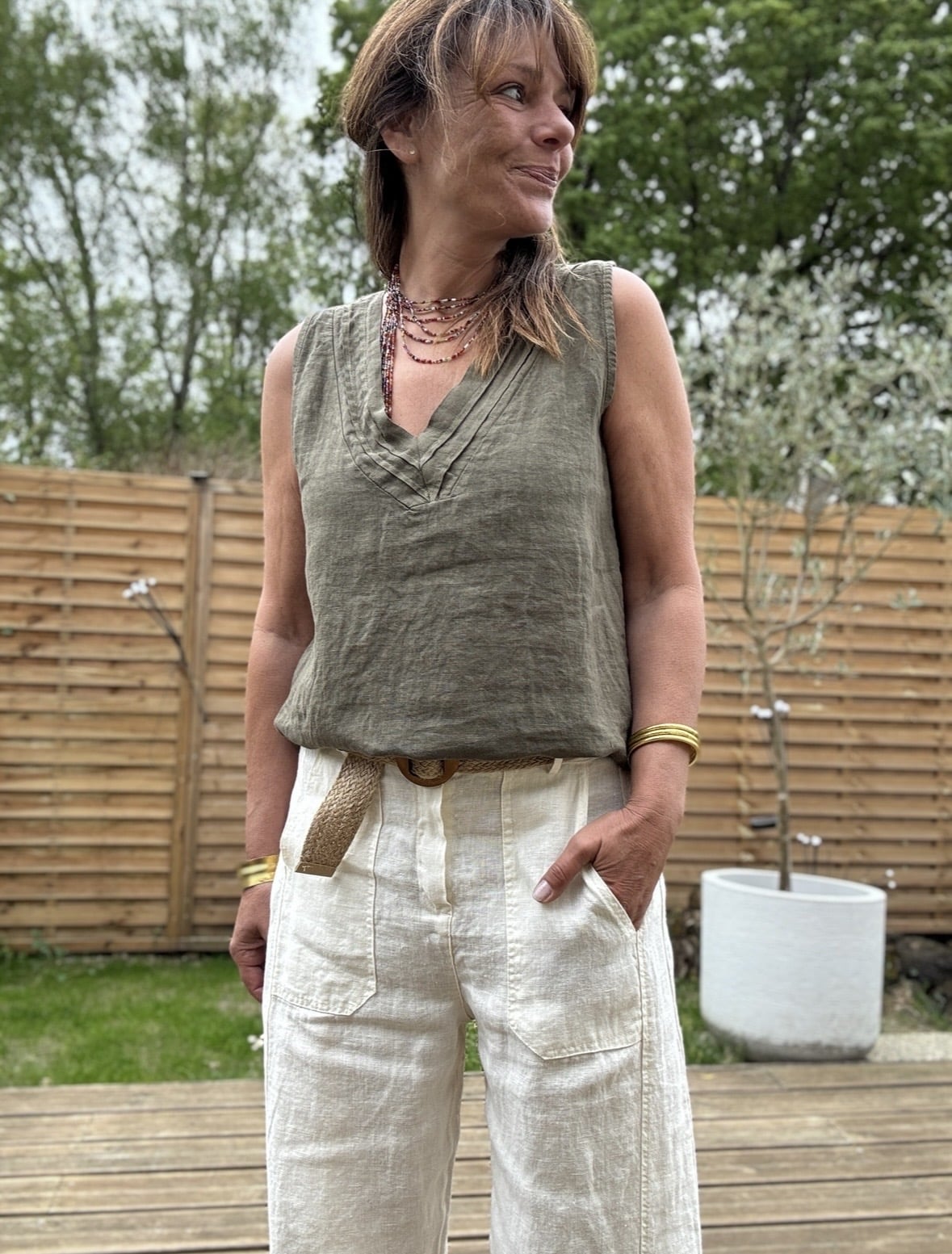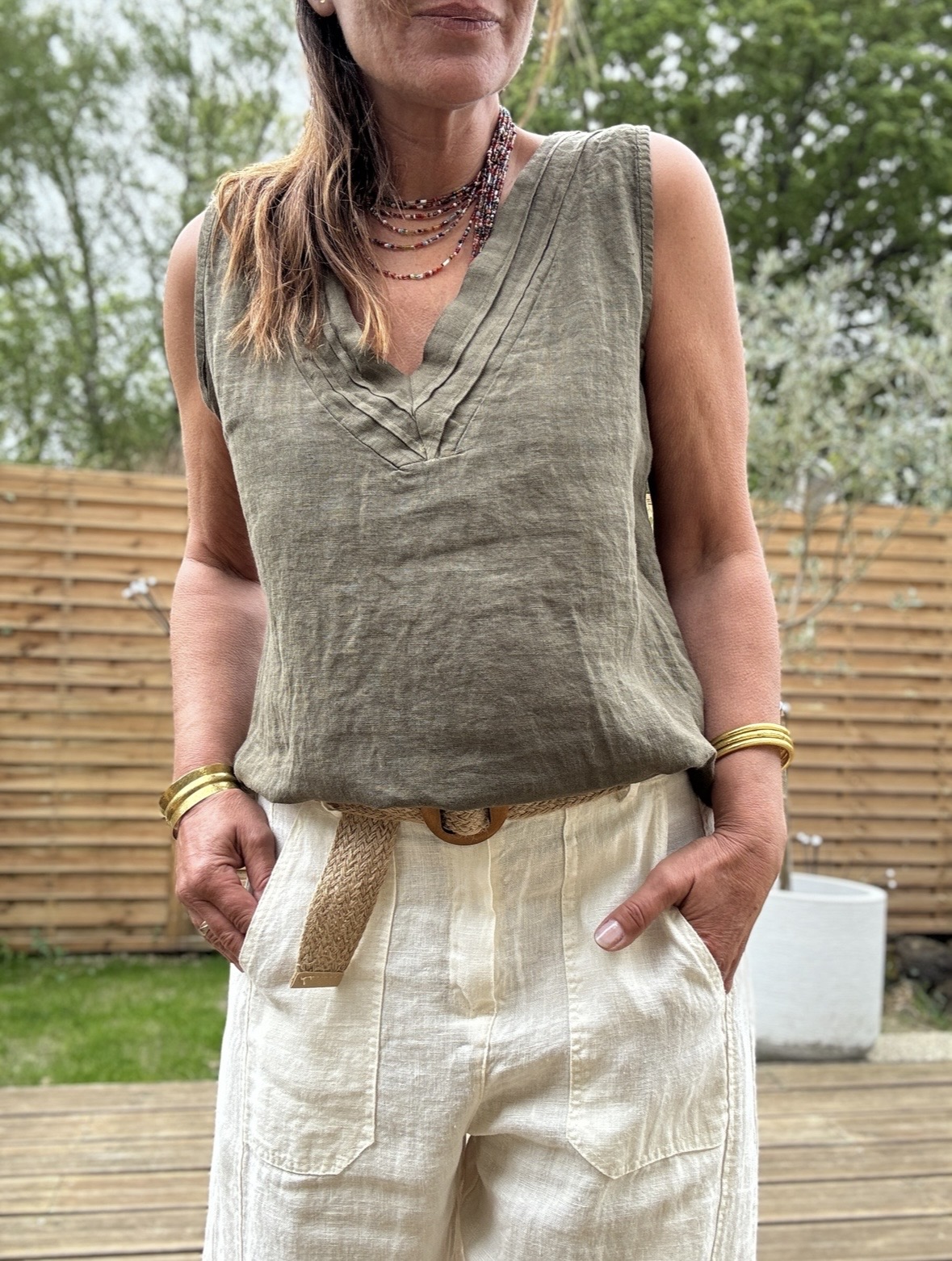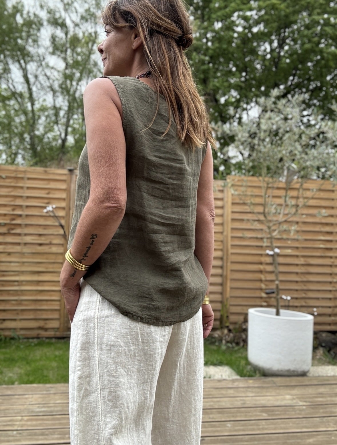 Débardeur en lin kaki Mila
