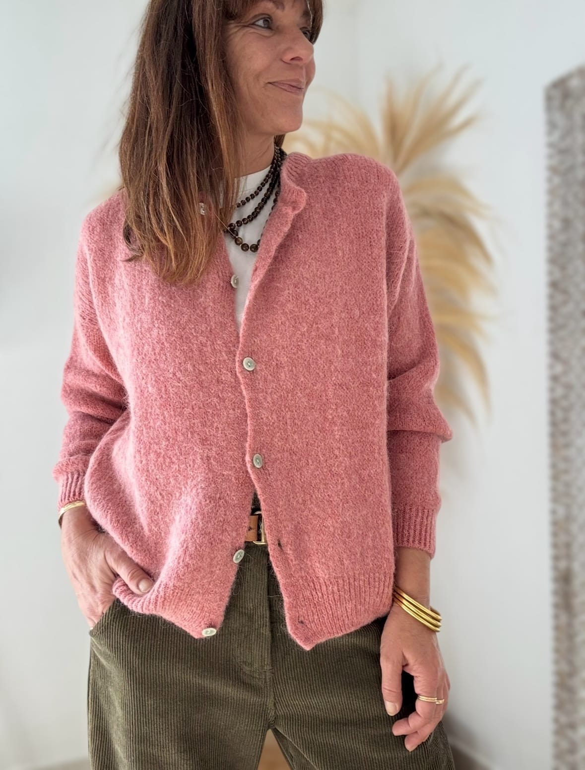 Gilet Burma en baby alpaga vieux rose