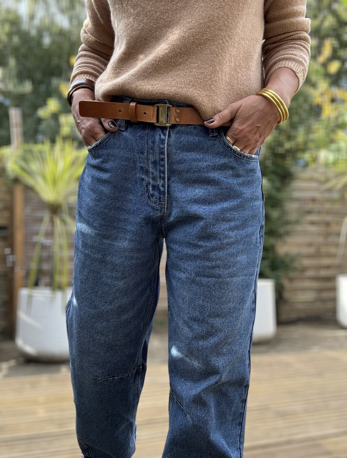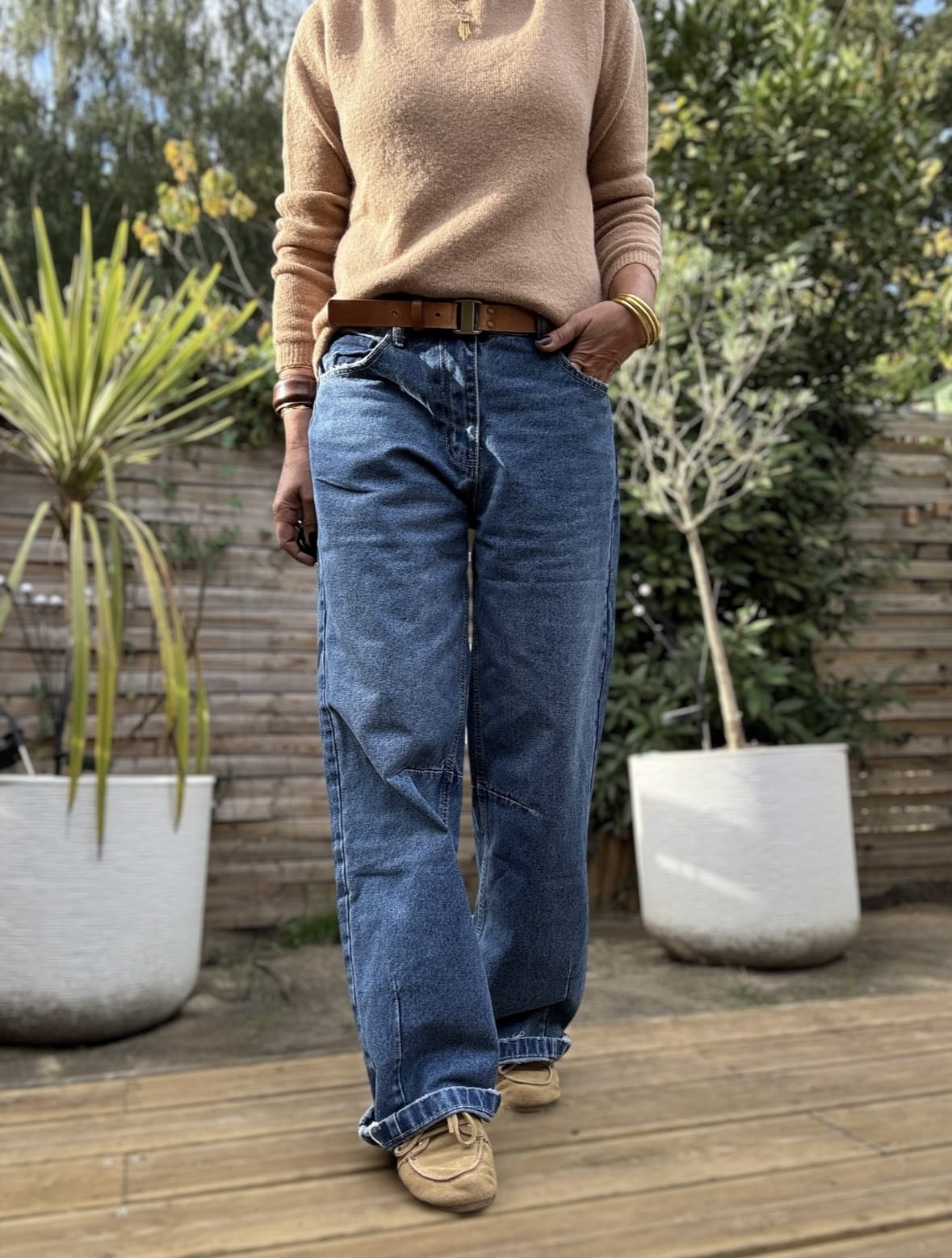Un jean au style affirmé signé VANITA, pensé pour les femmes qui aiment mixer confort et allure tendance. Sa coupe barrel taille haute met en valeur la silhouette, tandis que ses détails usés lui donnent ce petit côté cool et décontracté.