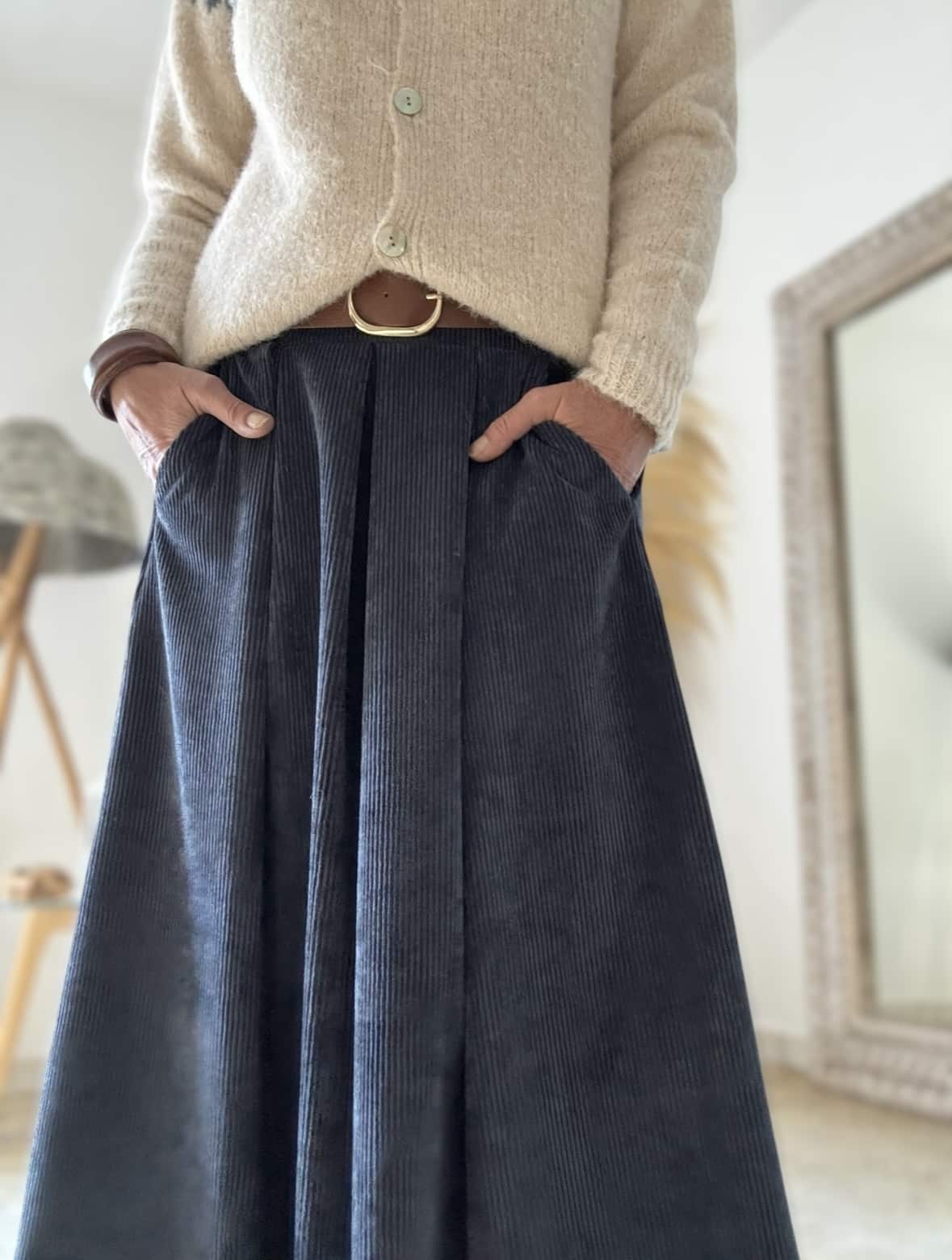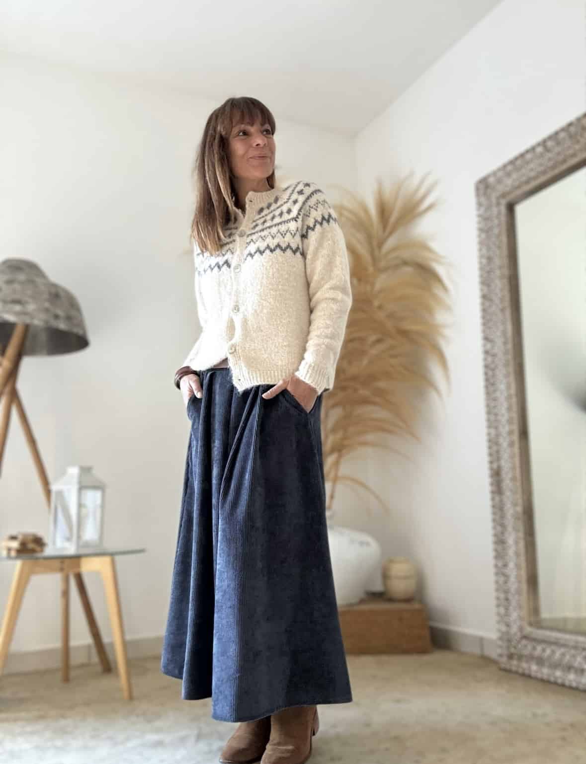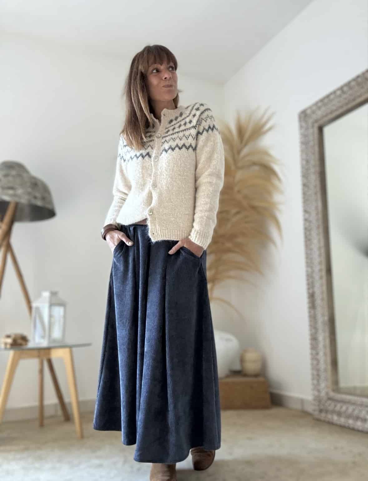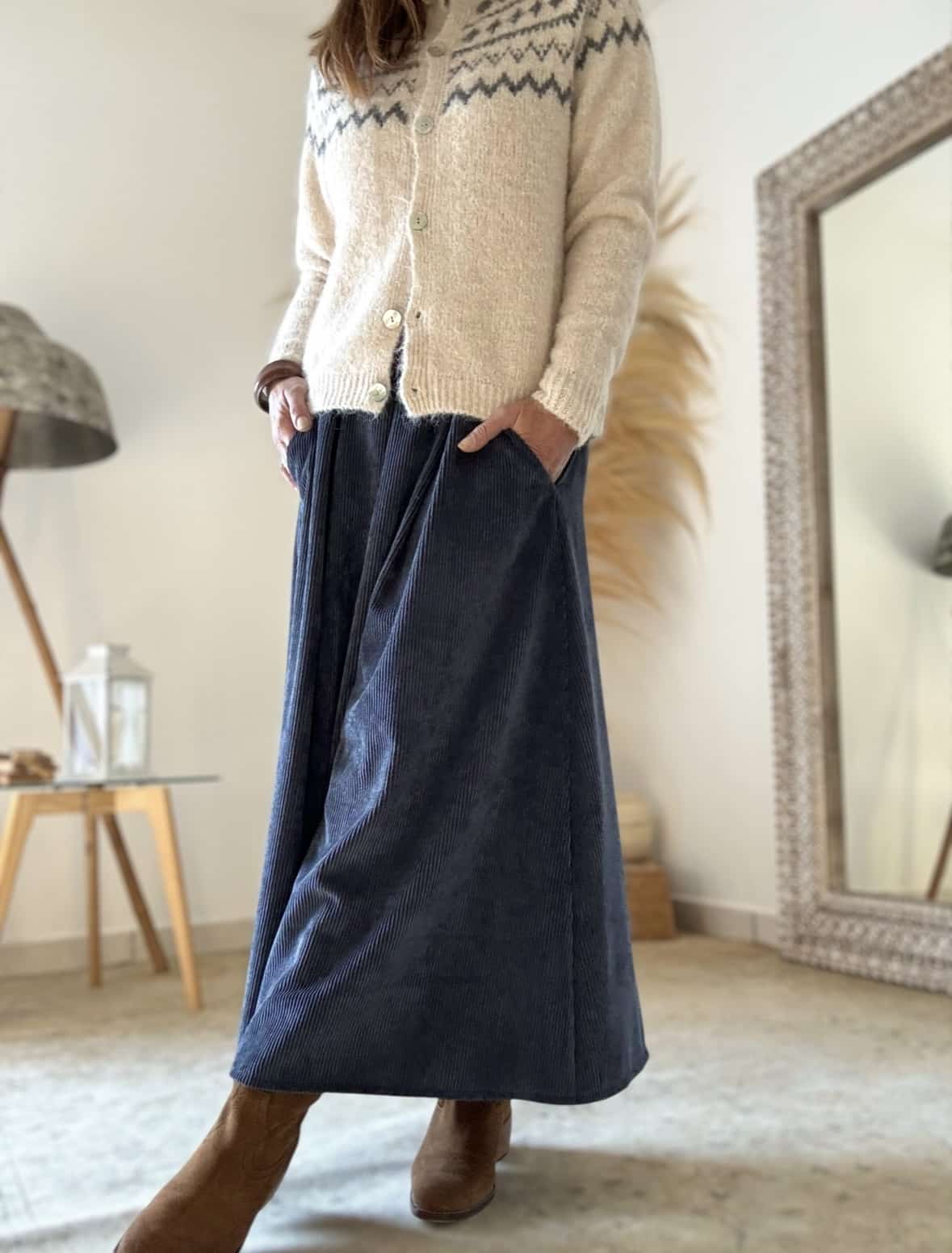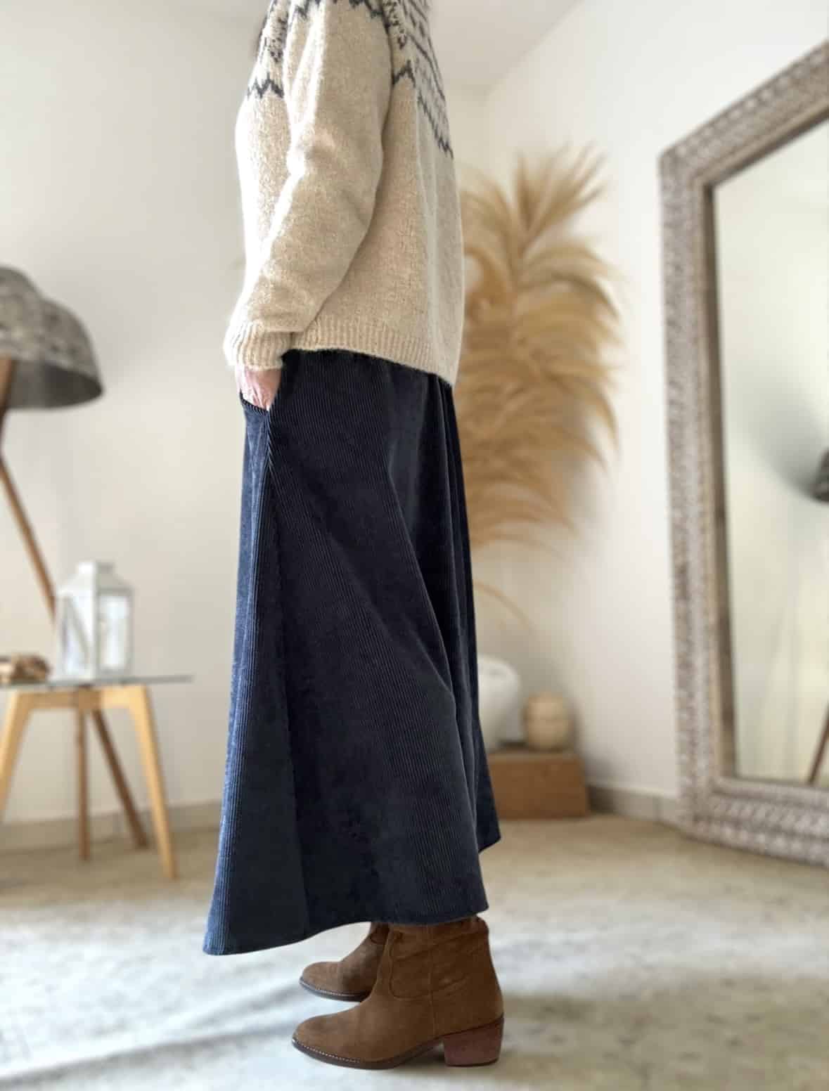 Jupe longue en velours bleu Damara