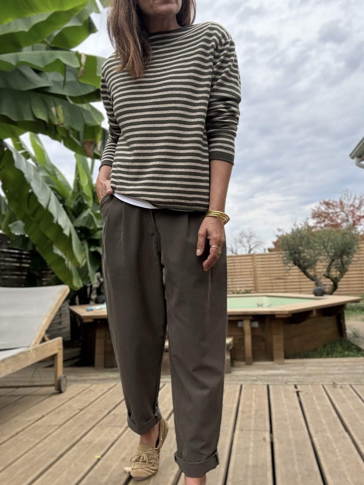 Laurence Mesure 1m64 et porte le pantalon Ninou en M pour un 38.