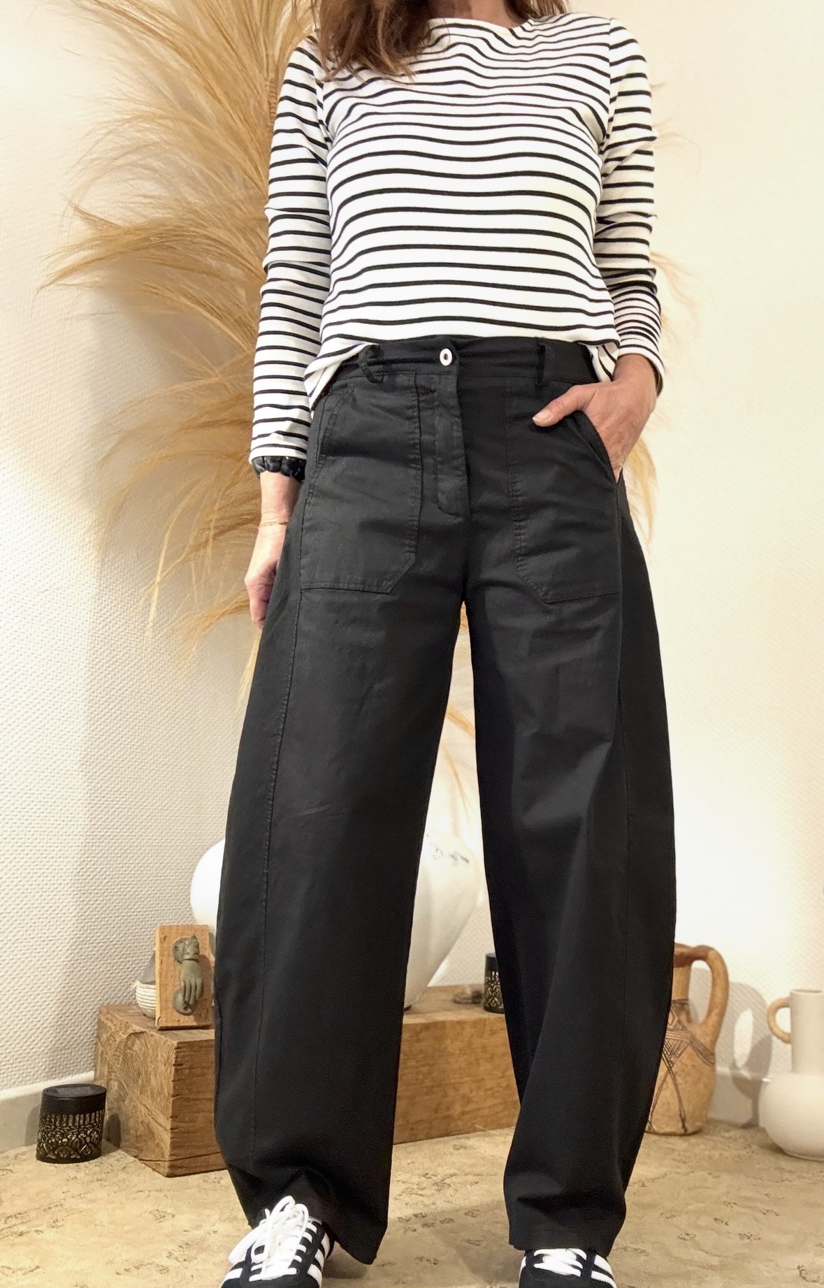 Un pantalon qui se porte aussi bien avec une chemise fluide qu’avec un simple t-shirt pour un style décontracté chic.
