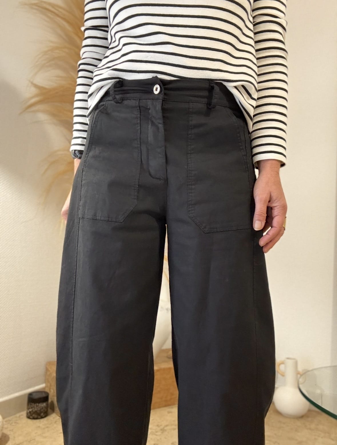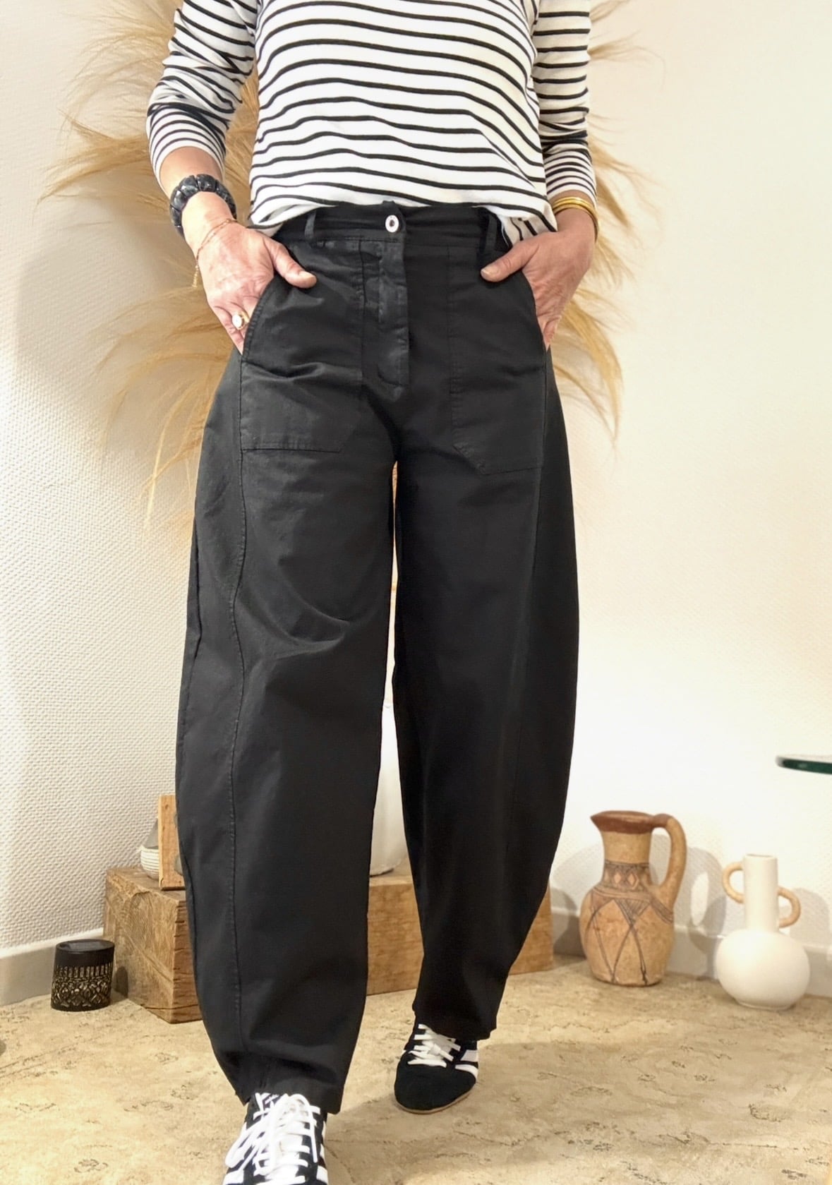 Ce pantalon Clotaire coupe ballon est une pièce essentielle pour un look moderne et effortless. Sa coupe arrondi et sa toile légère en font un allié du quotidien, à la fois confortable et élégant.