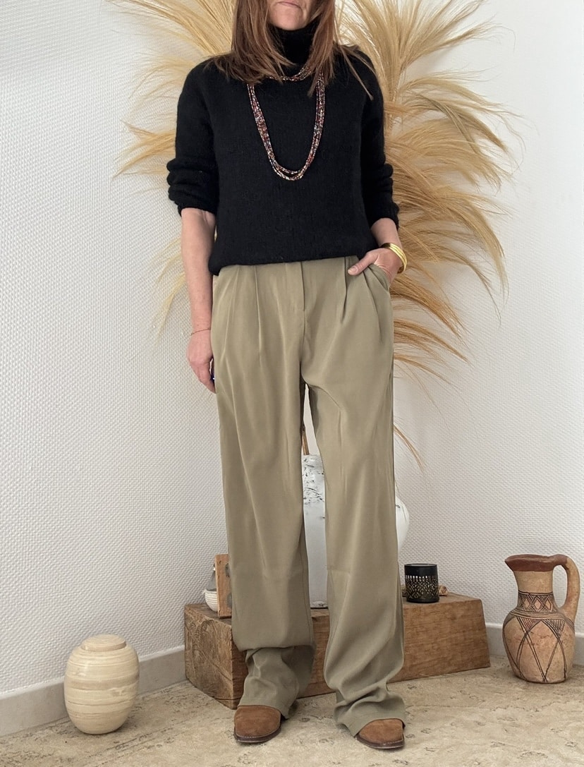 Laurence mesure 1m64 et porte le pantalon Darco en 36 pur un 36 habituel