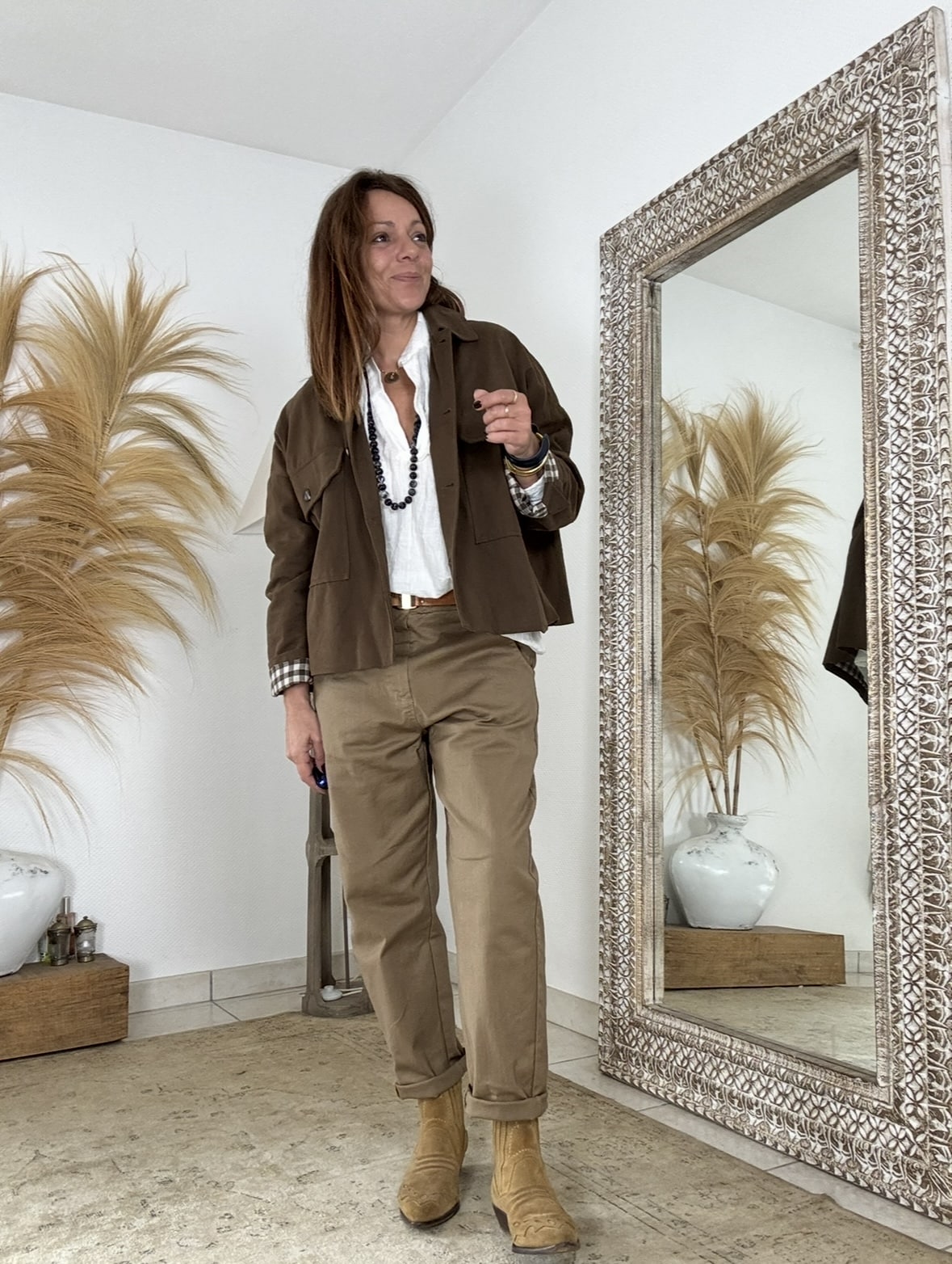 Pour une allure plus féminine, choisissez la blouse Intuition oversize écrue. Le résultat ? Un look bohème, doux et tendance.