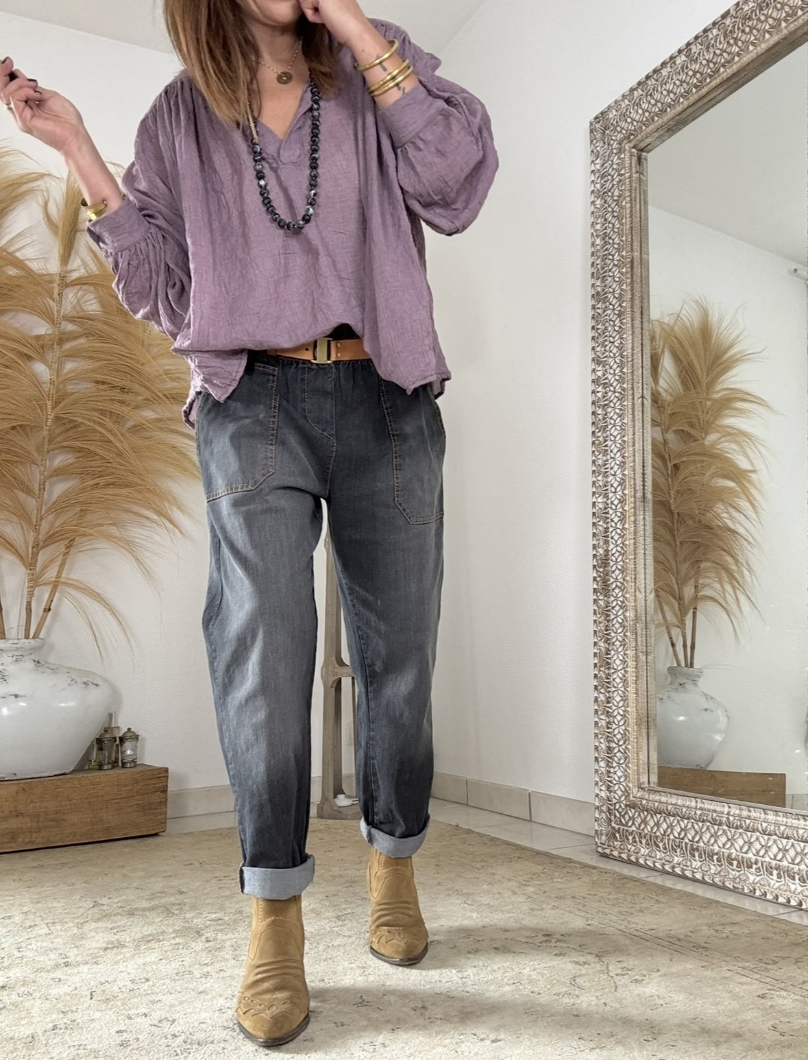 🌿 Le jean magique gris Nestor au charme bohème chic