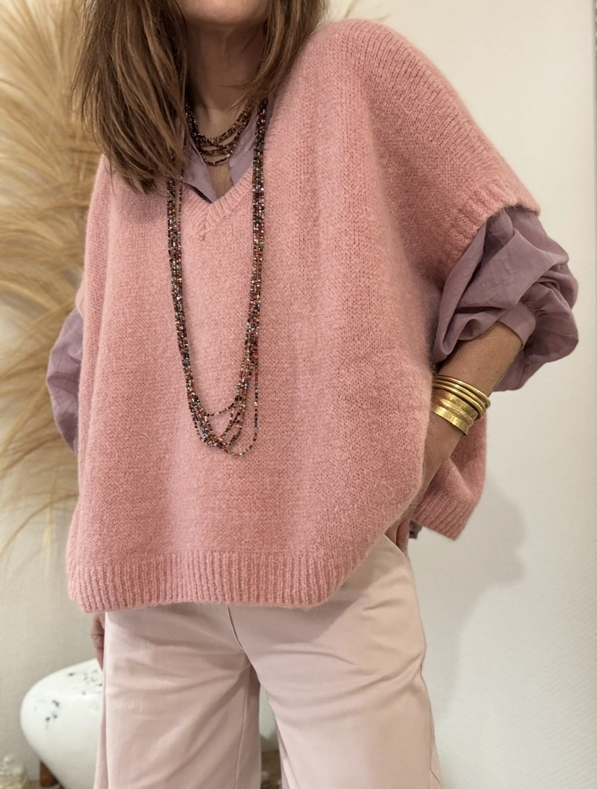 Simon est un pantalon à la coupe droite et ample, décliné dans un délicat rose antique, parfait pour les beaux jours. Confectionné en coton léger, il offre un tombé fluide et un confort absolu grâce à son dos élastiqué, tout en restant structuré avec sa fermeture par zip et boutons.Taille normale, ni haute, ni basse. Une pièce lumineuse, facile à porter, idéale pour le printemps, fabriquée en Italie. Prendre sa taille habituelle.