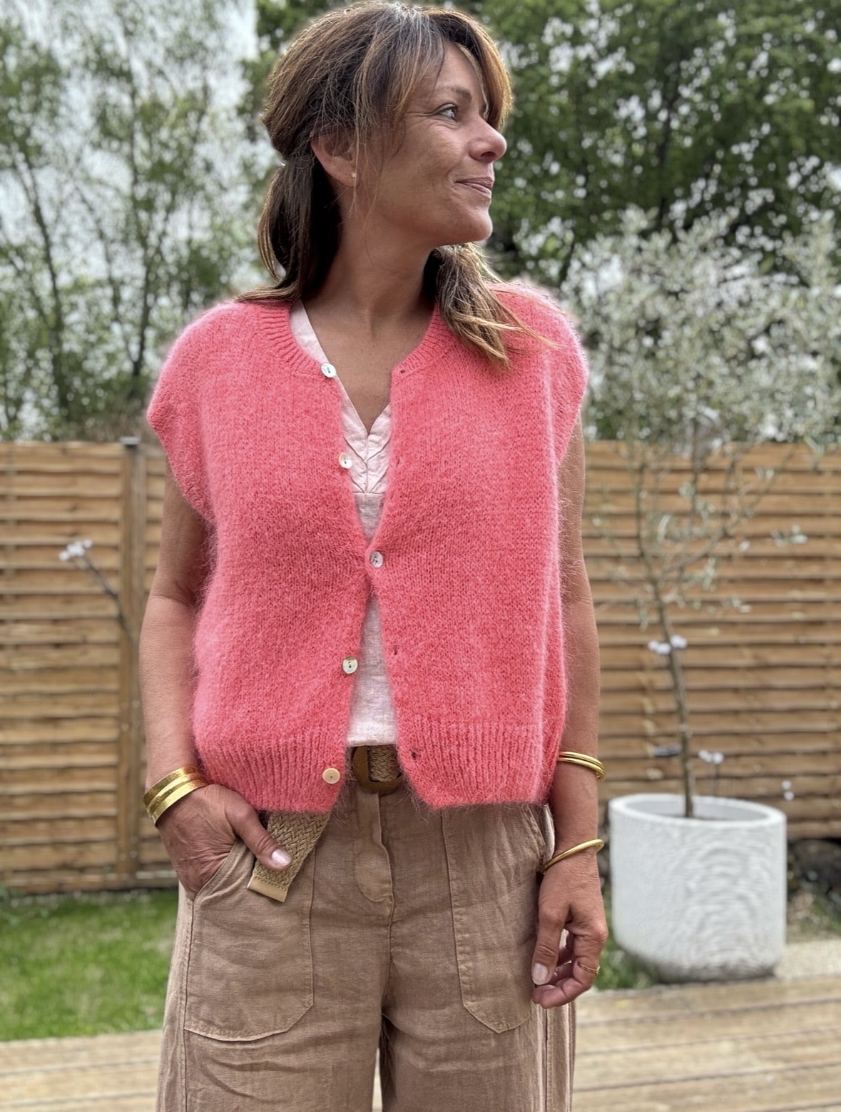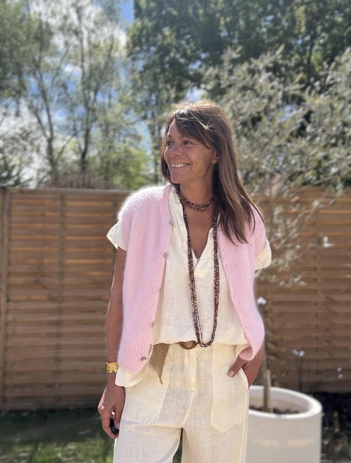 Il s’accorde parfaitement avec la jupe blanche Isaline pour un look frais et féminin. Vous pouvez aussi l’associer à un pantalon fluide ou un jean clair pour un style plus casual. Dans tous les cas, il apporte une touche de douceur et de féminité à votre silhouette.