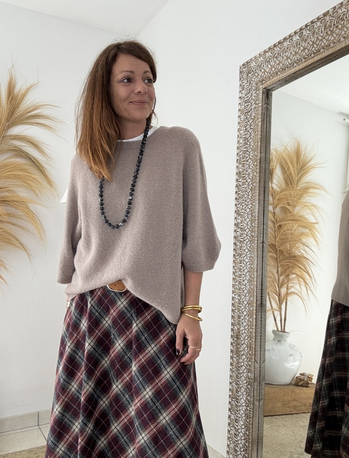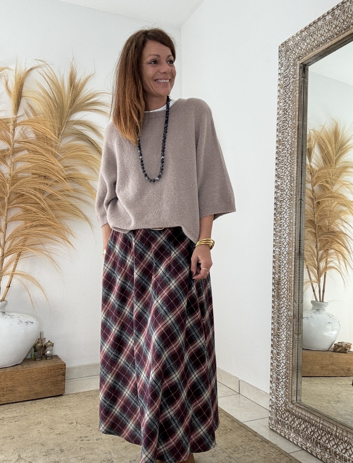 Il s’accorde facilement avec des tons neutres ou naturels pour un style harmonieux.