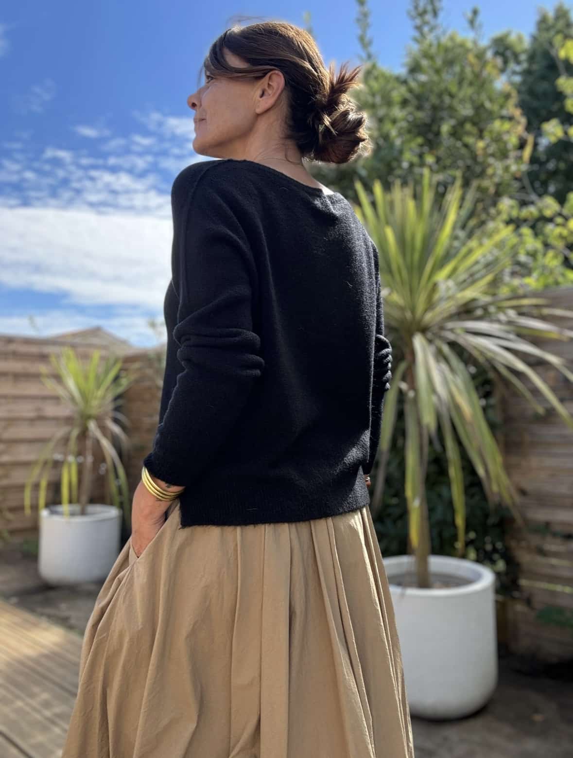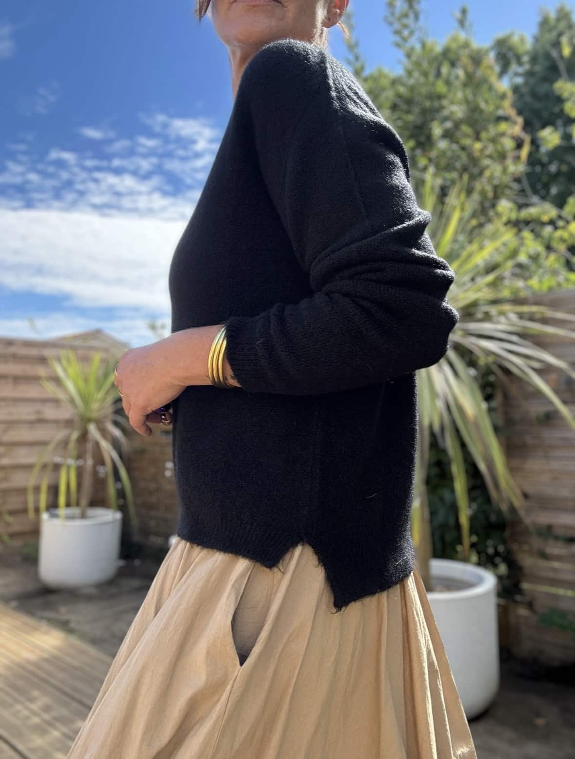 Le pull noir en baby alpaga est proposé en taille unique. Il convient aisément pour les silhouettes allant du 36 au 42. Plus de souplesse, plus d’adaptabilité, plus de liberté.