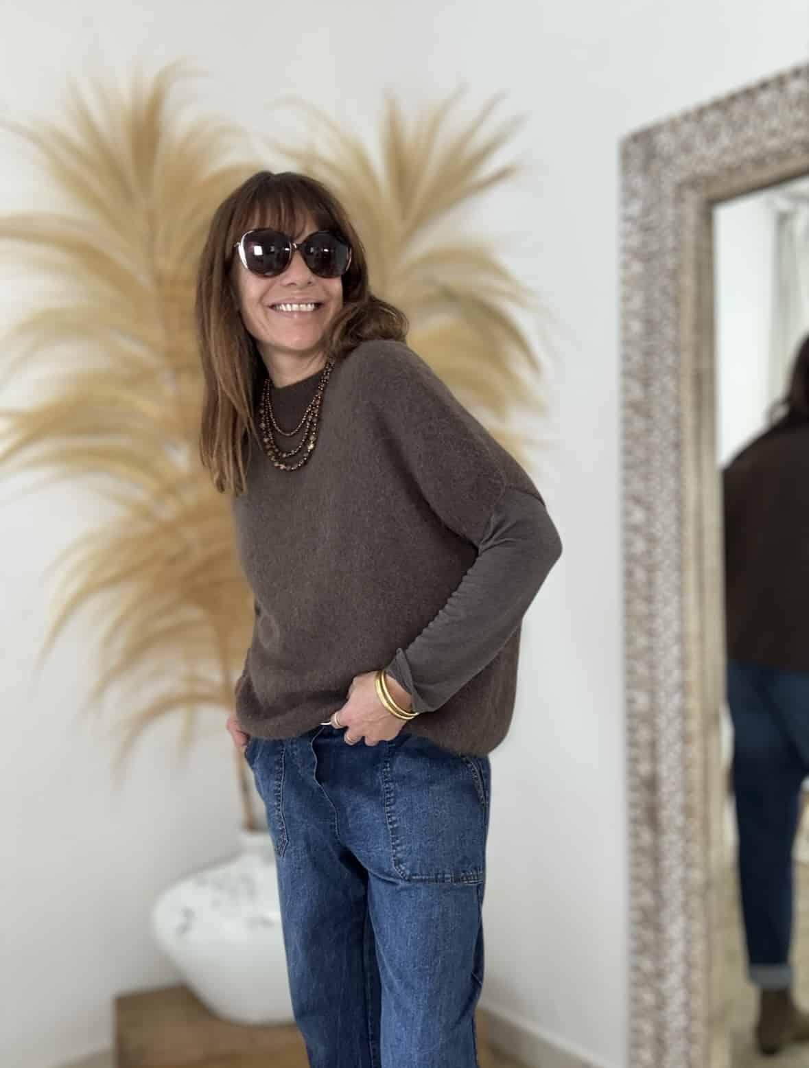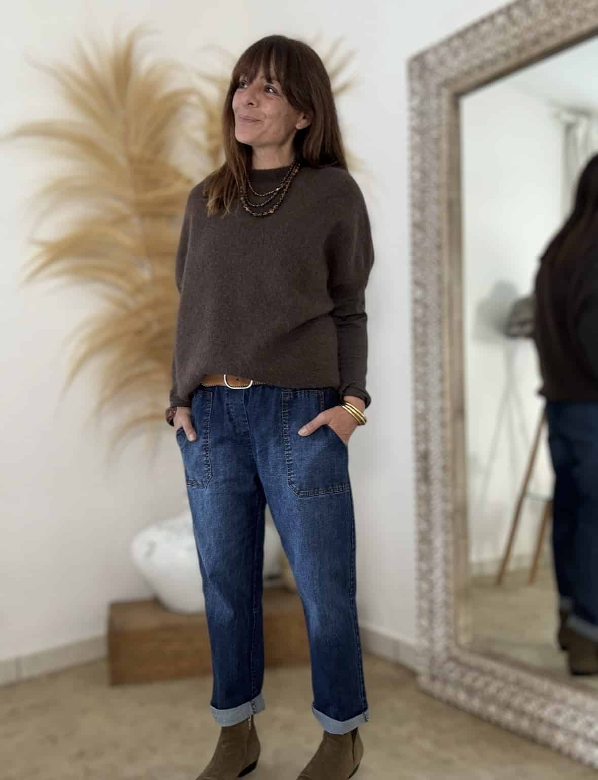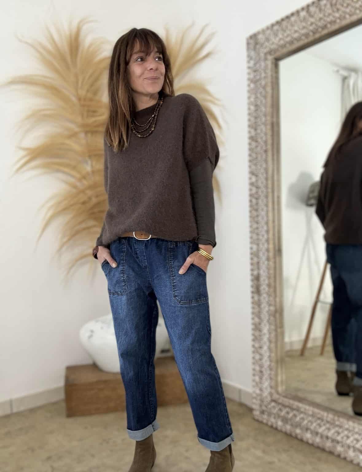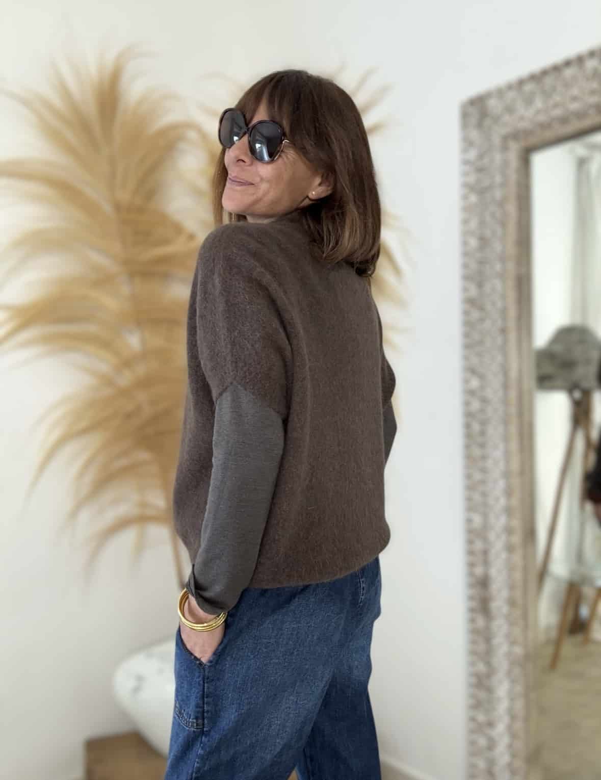 Pull Hathor chocolat, coupe ample et sans manche, col montant et douceur incroyable grâce à ses 45% de baby alpaga. Une pièce ultra cosy, chaude et élégante, parfaite en superposition. Taille unique (36–42). Magnifique couleur et fabrication italienne.