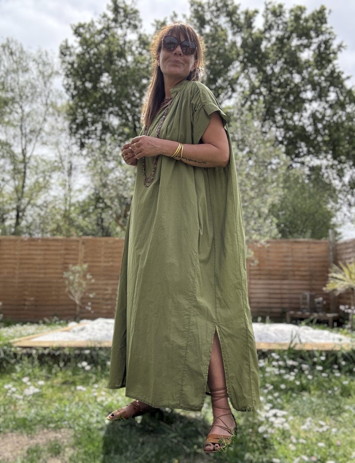 La robe OREA devient une pièce forte, confortable et facile à porter.