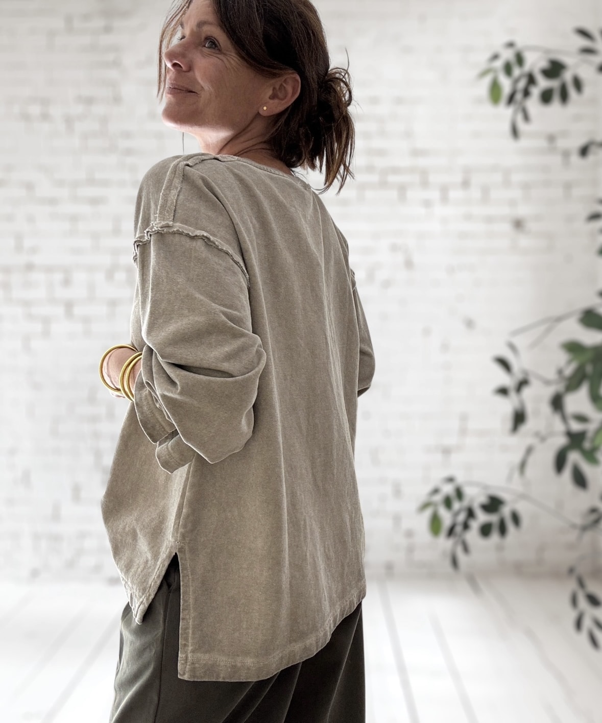 Le sweat oversize GIGI affiche un charme intemporel. Sa teinte beige délavée crée un esprit vintage assumé. Plus qu’un basique, il devient une pièce de caractère. Plus vous le portez, plus il s’adoucit et se patine.